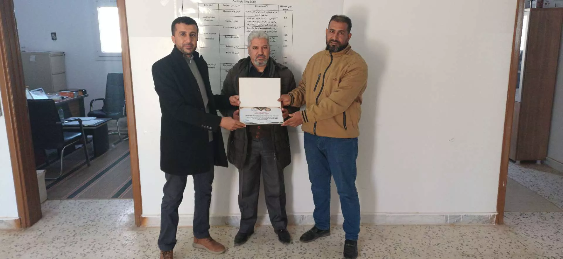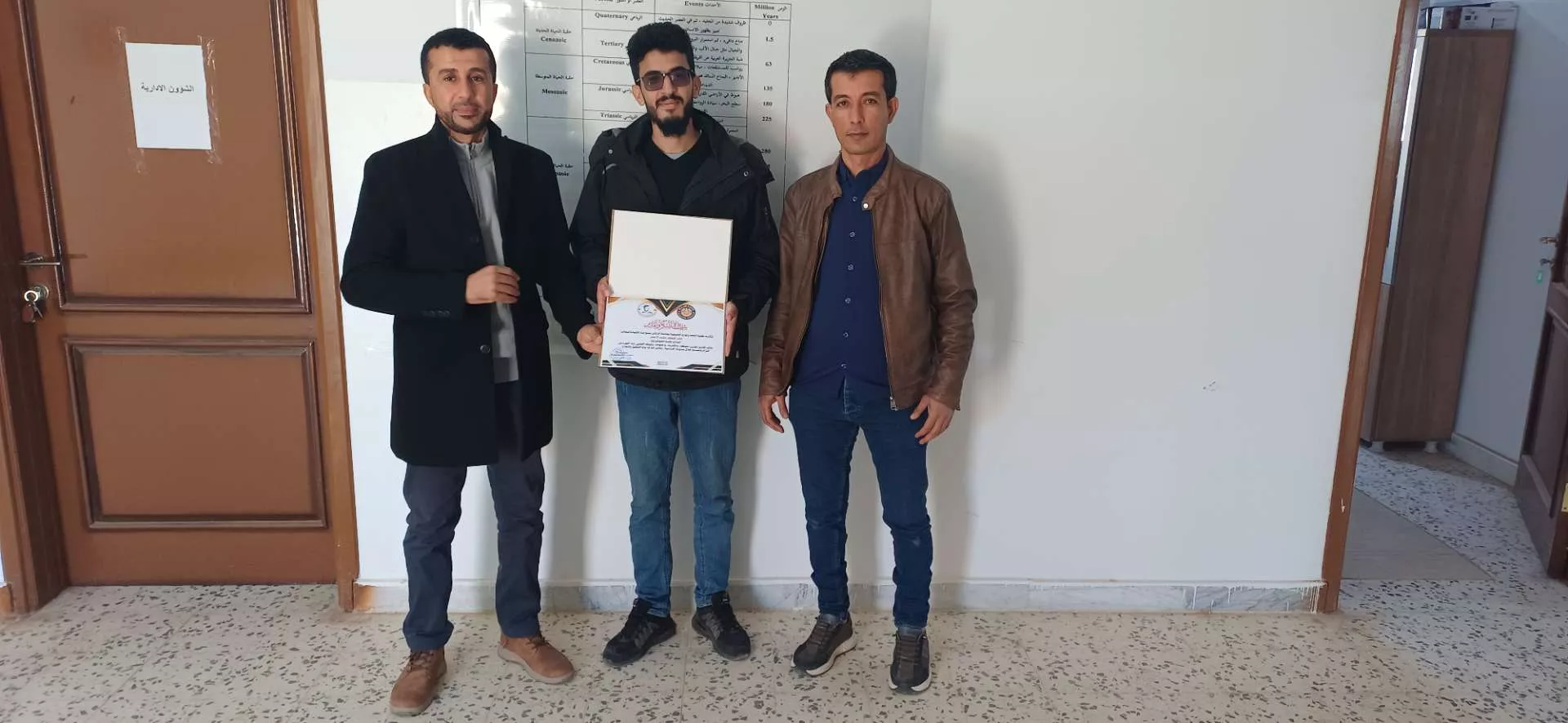 وفي إطار حرص كلية النفط والموارد الطبيعية – جامعة الزنتان على ترسيخ ثقافة التميّز، وبث روح التحفيز والاجتهاد بين طلبتها وموظفيها، واستمرارًا لنهجها في دعم النماذج المشرفة، أقامت الكلية اليوم الخميس الموافق 8-1-2026م، برعاية العميد المكلف د. محمد بن نصر، وكلاً من مدير إدارة الشؤون الإدارية أ. علي المديهين، ورئيس قسم الجيوفيزياء أ. لامير الباهي، ومسجل الكلية أ. محمد لاحيول بتكريم أفضل موظف وطالب متميزين للفصل الدراسي خريف 2025–2026م.